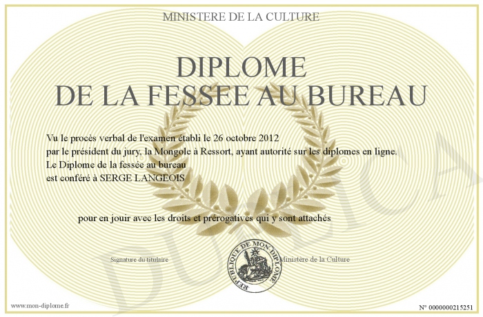 Envoyez par email votre Diplôme de la fessée au bureau personalisé