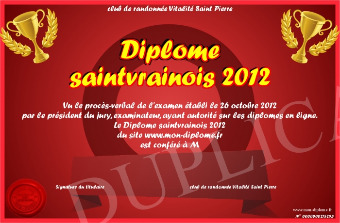 Envoyez par email votre Diplôme saintvrainois 2012 personalisé