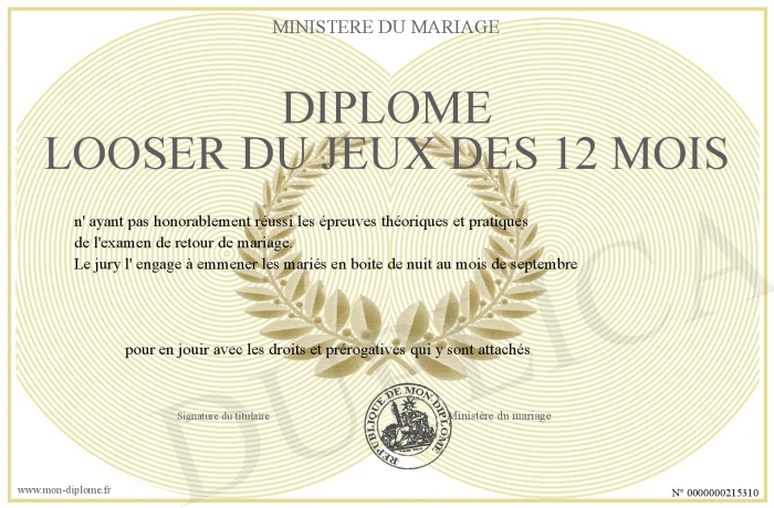 Envoyez par email votre Diplôme looser du jeux des 12 mois personalisé
