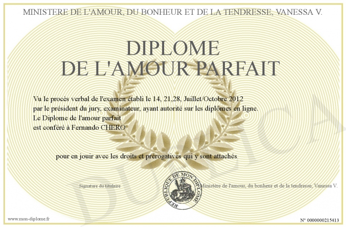 Envoyez par email votre Diplôme de l'amour parfait personalisé