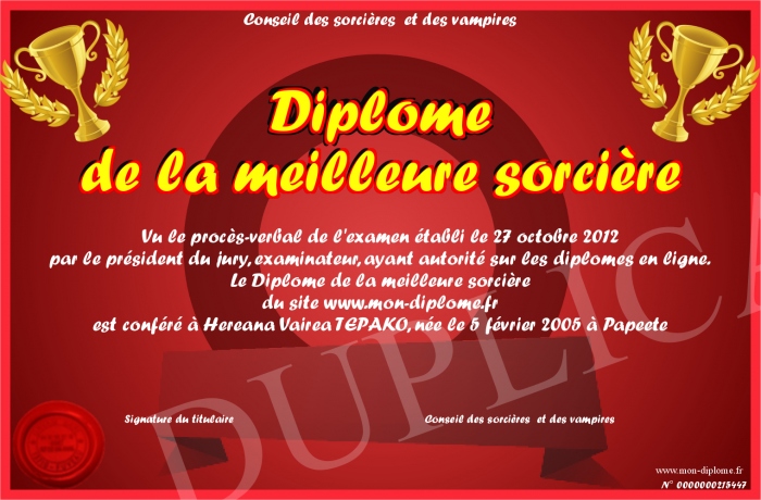 Envoyez par email votre Diplôme de la meilleure sorcière personalisé