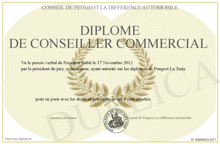 Envoyez par email votre Diplome de conseiller commercial personalisé