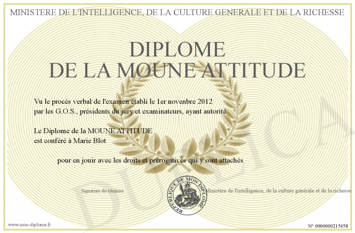Envoyez par email votre Diplôme de la MOUNE ATTITUDE personalisé