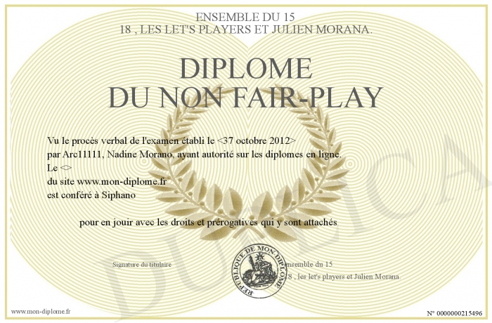 Envoyez par email votre Diplôme du non fair-play personalisé