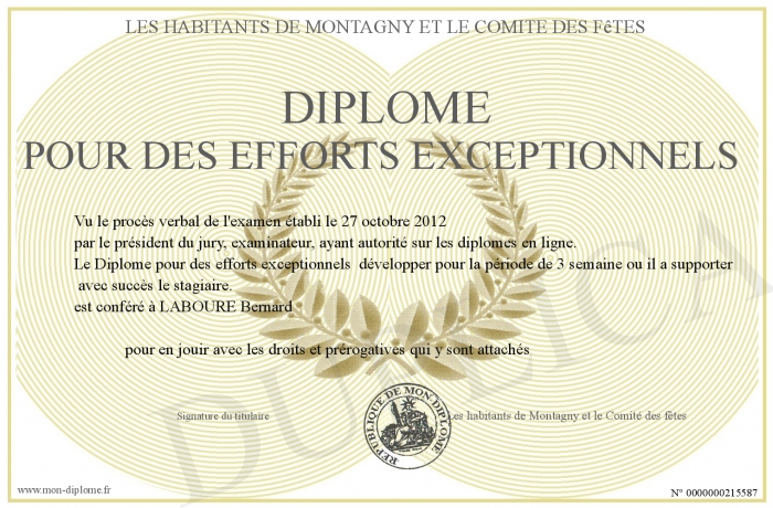 Envoyez par email votre Diplôme pour des efforts exceptionnels personalisé