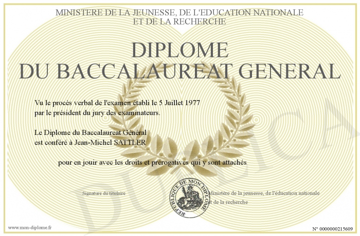 Envoyez par email votre Diplôme du Baccalaureat Général personalisé
