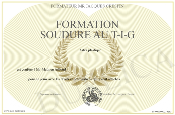 Envoyez par email votre formation soudure au T-I-G personalisé