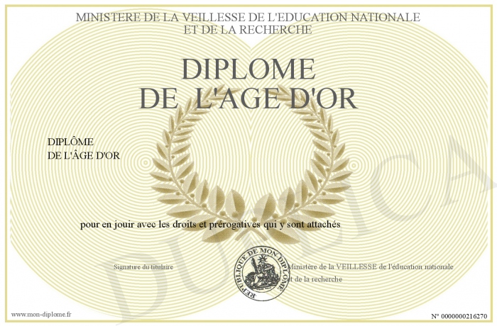 Envoyez par email votre Diplôme DE L'AGE D'OR personalisé