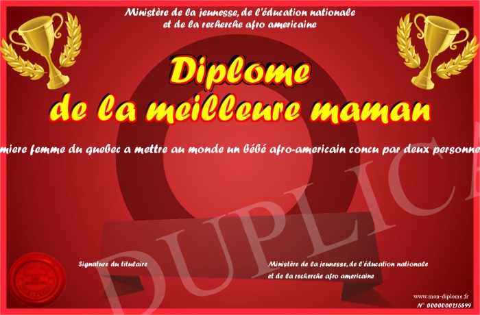 Envoyez par email votre Diplôme de la meilleure maman personalisé