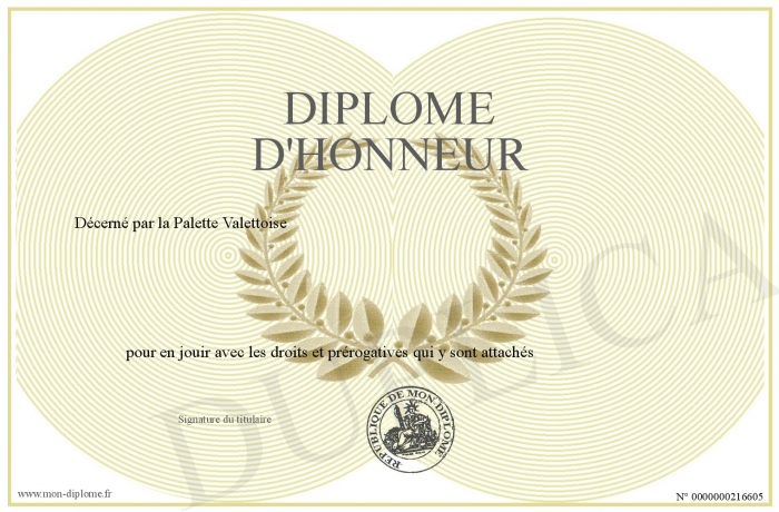 Envoyez par email votre Diplôme d'Honneur personalisé
