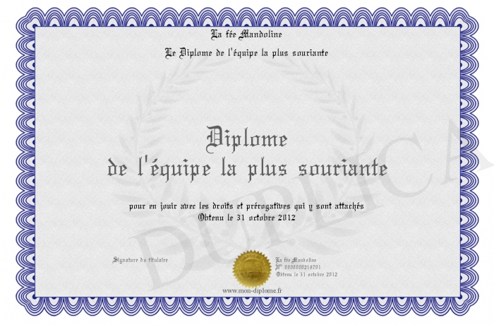 Envoyez par email votre Diplôme de l'équipe la plus souriante personalisé