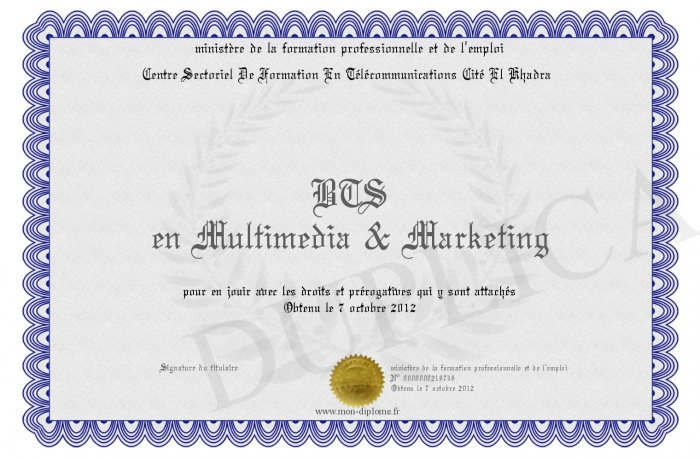 Envoyez par email votre BTS en Multimedia & Marketing personalisé