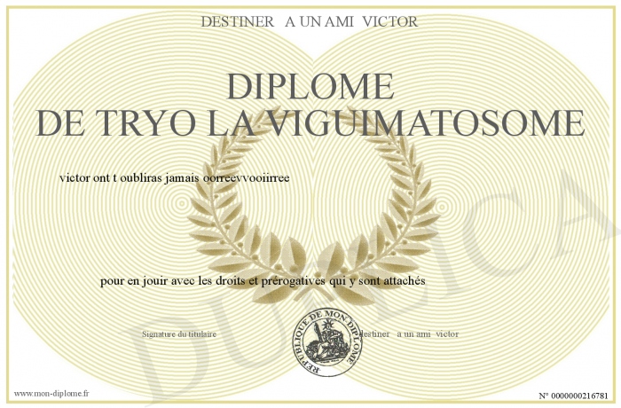 Envoyez par email votre diplome de tryo la viguimatosome personalisé