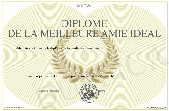 Envoyez par email votre Diplôme de la meilleure amie idéal personalisé