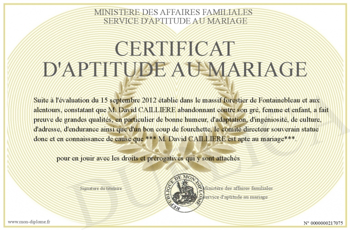 envoyé par le Ministère des affaires familiales - service d'aptitude au mariage !