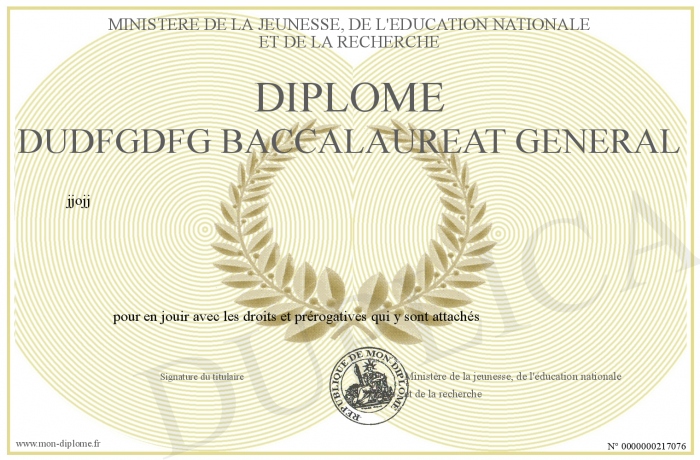 Envoyez par email votre Diplôme dudfgdfg baccalaureat général personalisé