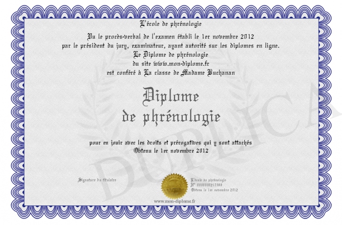 Envoyez par email votre Diplôme de phrénologie personalisé