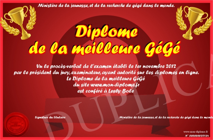 Envoyez par email votre Diplôme de la meilleure GéGé personalisé