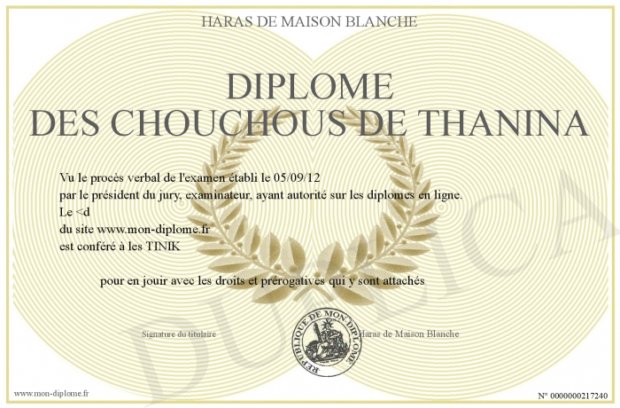 Envoyez par email votre Diplôme des chouchous de Thanina personalisé