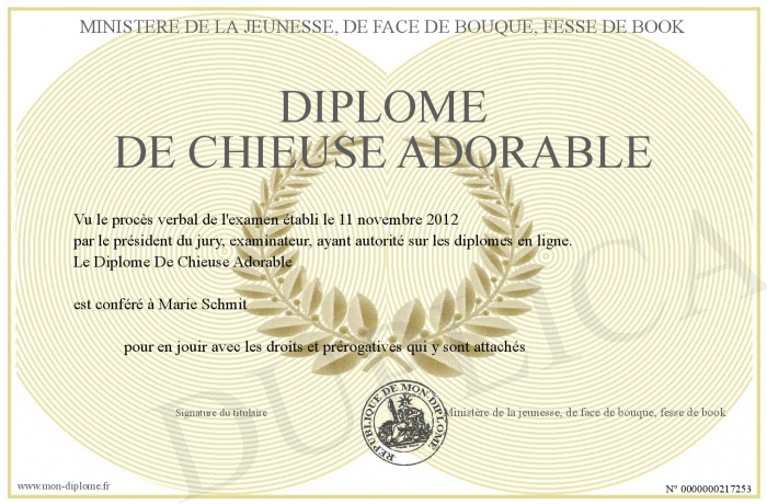 Envoyez par email votre Diplôme De Chieuse Adorable personalisé