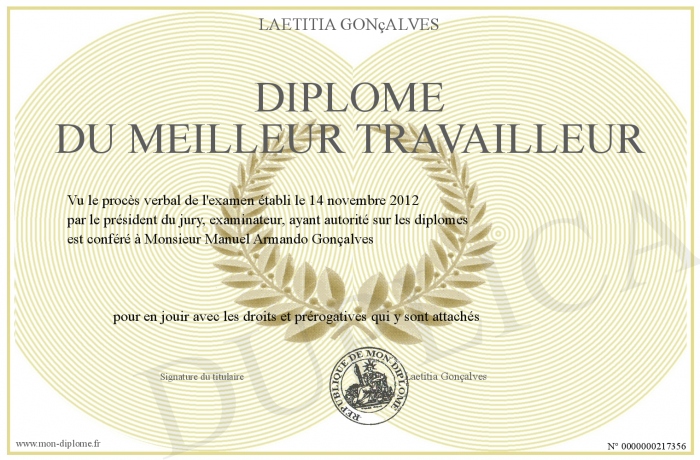 Envoyez par email votre Diplôme du meilleur travailleur personalisé