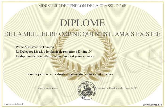 Envoyez par email votre Diplome de la meilleure Copine qui n'est jamais existée personalisé