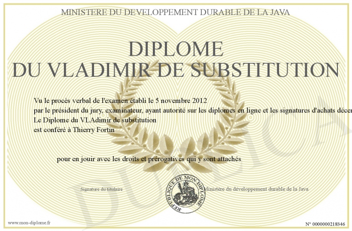 Envoyez par email votre Diplôme du VLAdimir de substitution personalisé