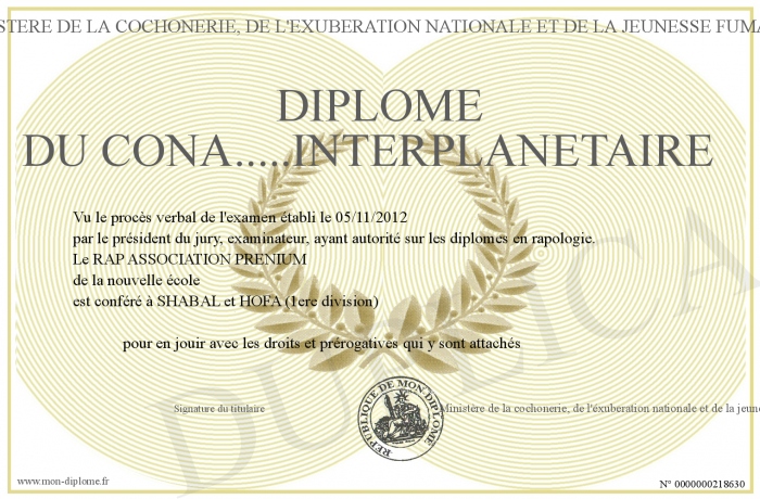 Envoyez par email votre Diplôme du cona.....interplanétaire personalisé