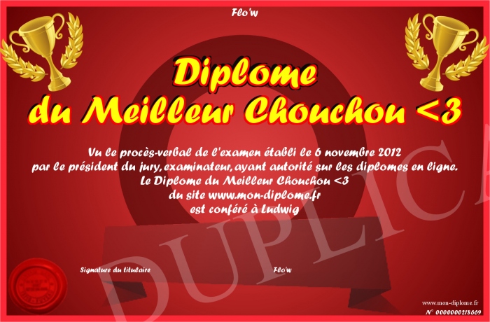 Envoyez par email votre Diplôme du Meilleur Chouchou -3 personalisé