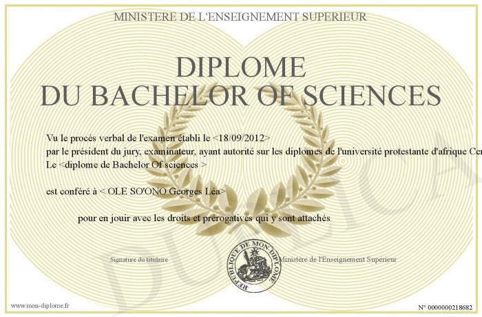 Envoyez par email votre Diplôme du Bachelor of Sciences personalisé