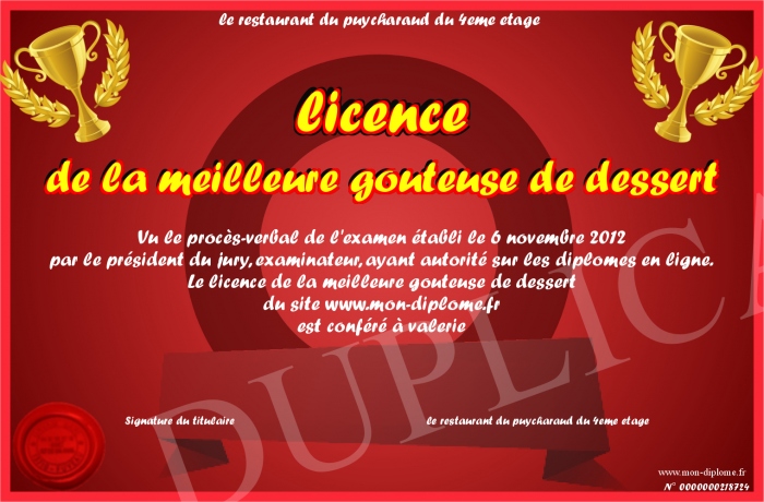 Envoyez par email votre licence de la meilleure gouteuse de dessert personalisé
