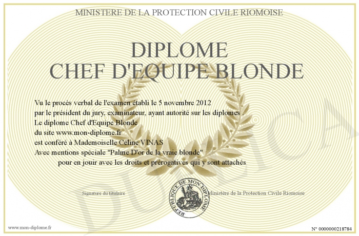 Envoyez par email votre diplôme Chef d'Equipe Blonde personalisé
