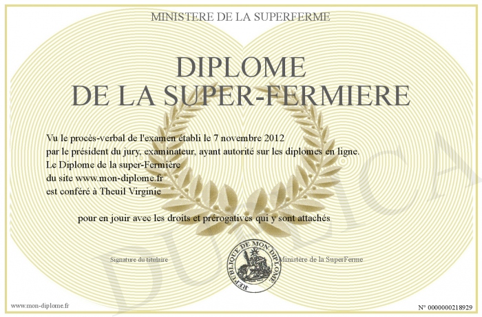 Envoyez par email votre Diplôme de la super-Fermière personalisé