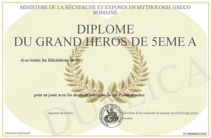 Envoyez par email votre Diplôme du grand héros de 5ème A personalisé