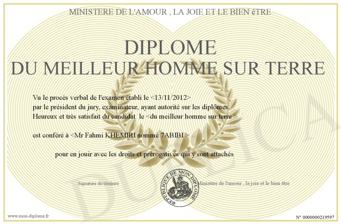 Envoyez par email votre Diplôme du meilleur homme sur terre personalisé