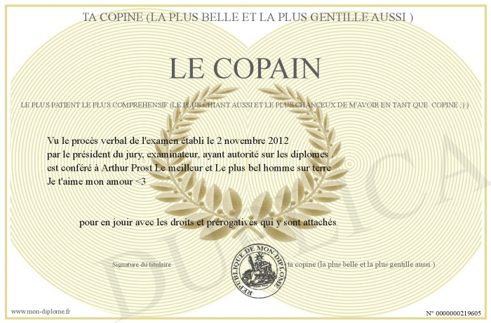 Envoyez par email votre Le copain le plus patient le plus compréhensif (le plus chiant aussi et le plus chanceux de m'avoir en tant que copine ;) ) personalisé