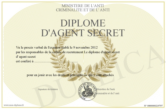 Envoyez par email votre diplôme d'agent secret personalisé