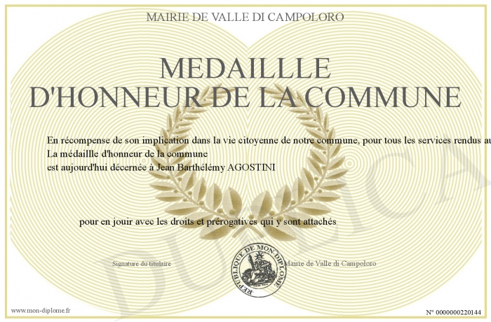 Envoyez par email votre médaillle d'honneur de la commune personalisé