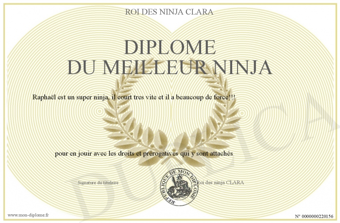 Envoyez par email votre Diplôme du meilleur ninja personalisé