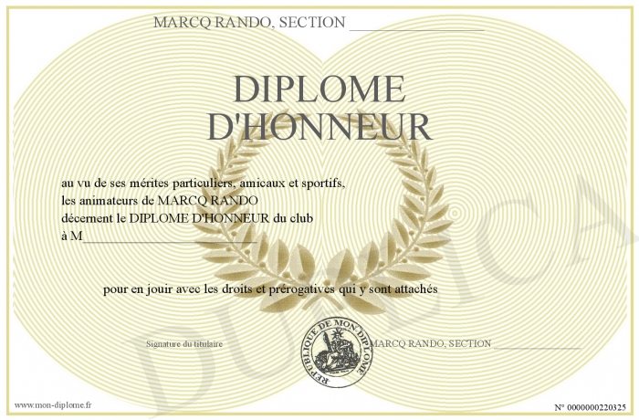 Envoyez par email votre DIPLOME D'HONNEUR personalisé