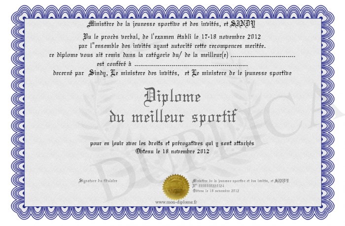 Envoyez par email votre Diplôme du meilleur sportif personalisé