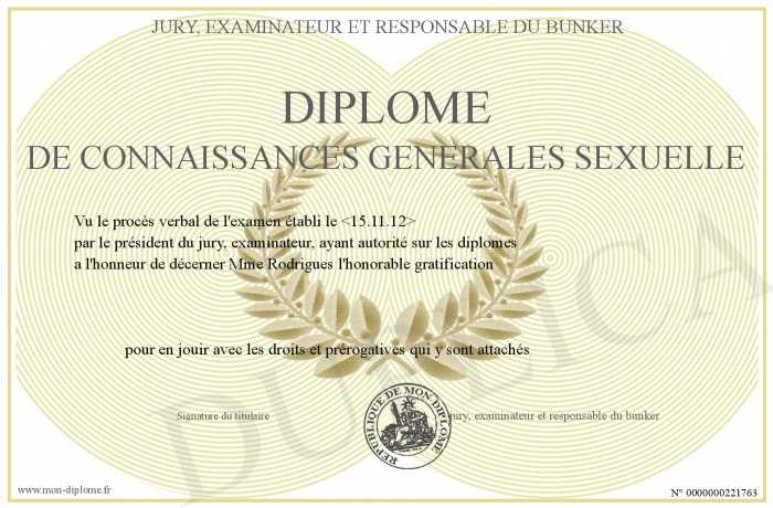 Envoyez par email votre Diplôme de connaissances générales sexuelle personalisé