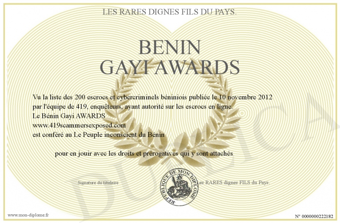 Envoyez par email votre Bénin Gayi AWARDS personalisé