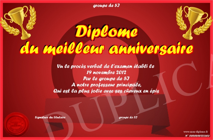 Envoyez par email votre Diplome du meilleur anniversaire personalisé