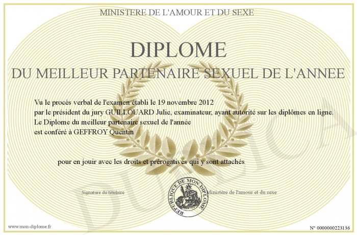 Envoyez par email votre Diplôme du meilleur partenaire sexuel de l'année personalisé