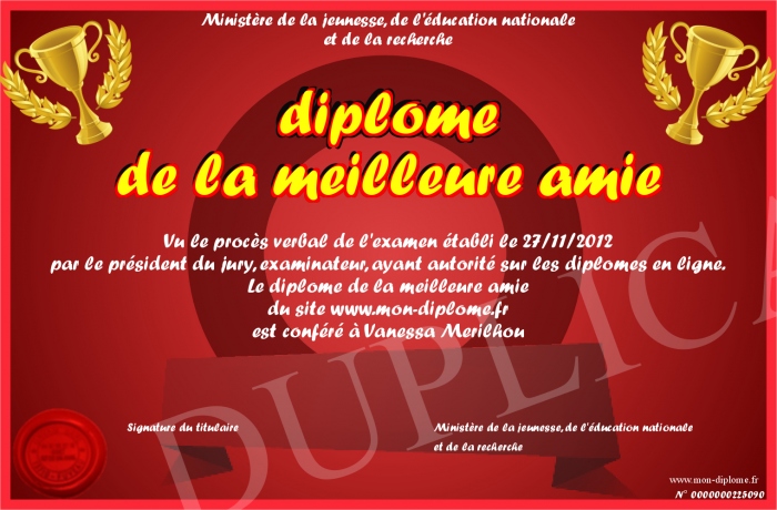 Envoyez par email votre diplôme de la meilleure amie personalisé