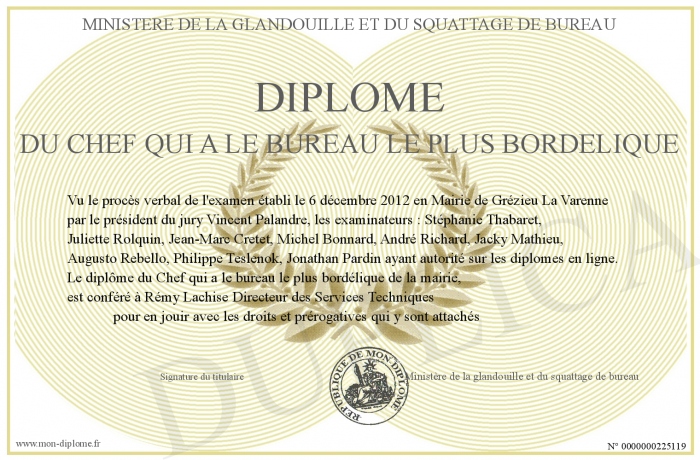 Envoyez par email votre Diplôme du Chef qui a le bureau le plus bordélique personalisé