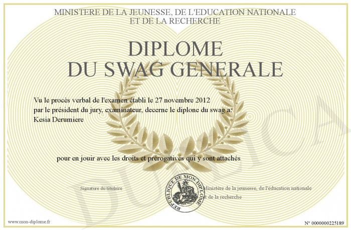 Envoyez par email votre Diplôme du SWAG génerale personalisé
