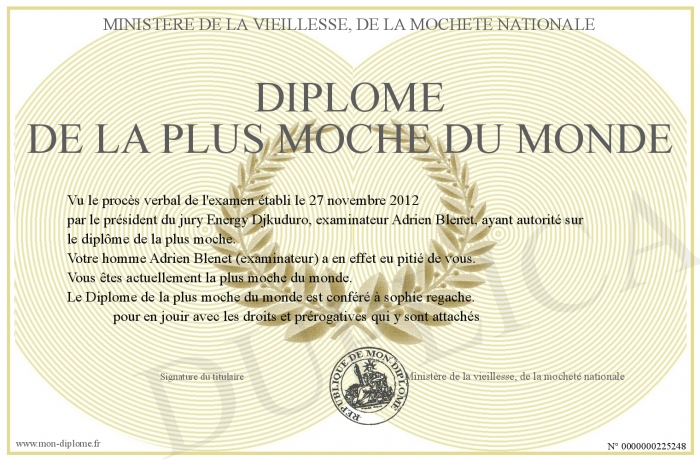 Envoyez par email votre Diplôme de la plus moche du monde personalisé
