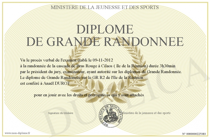 Envoyez par email votre Diplôme de Grande Randonnée personalisé
